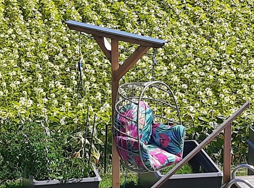Ende August 2025, endlich ist das Projekt fertig und abgeschlossen. Die Damen haben sich auf einen Hängesessel geeinigt, war gar nicht so einfach, einen Ausgestellten zu finden, Hängesessel gibts fast ausschließlich online. Und Hängesessel ohne Gestell mit dabei gibts gar ned. Das müss ma alt willhabieren.