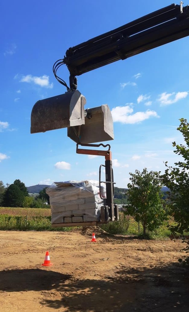Für der Mäuerchen haben wir uns Steine für eine Trockensteinmauer ausgesucht. Frei nach dem Motto, Fahr nicht fort, kauf in Böheimkichen, bei der Fa. Tremmel.
