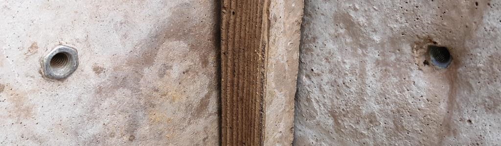 Die Muttern sind grob unterschiedlich im Beton eingegossen