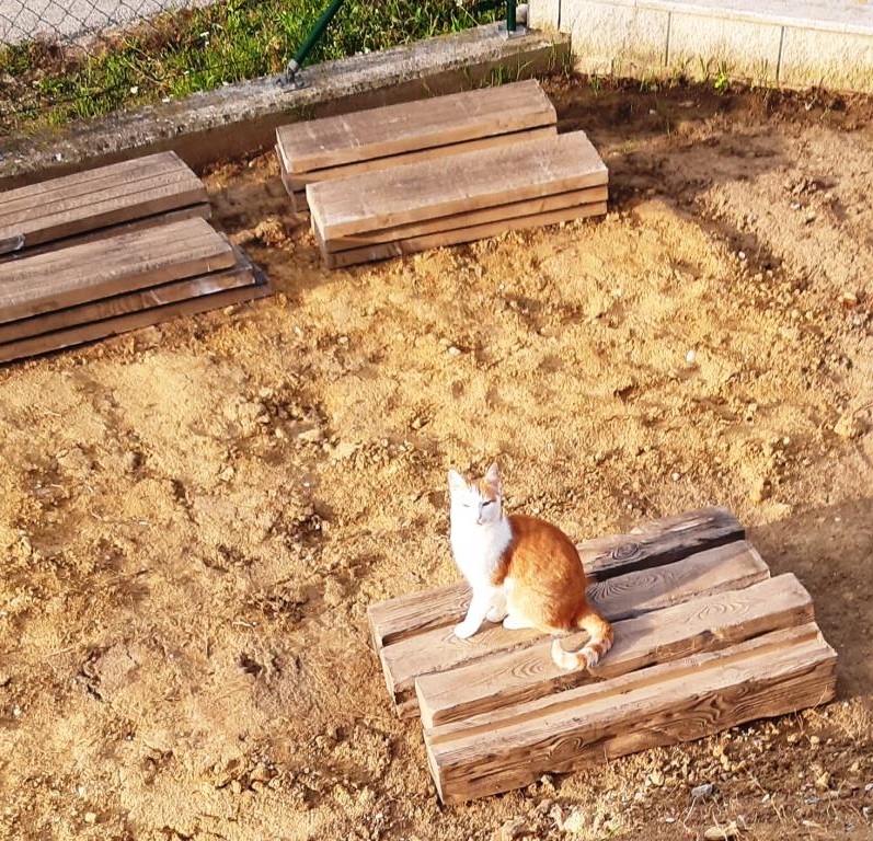wurde nicht so gut verdichtet, wie die ebenen Flächen, er sieht schon bissl aus wie eine Kartonara- Autobahn, tausende Pfotenabdrücke in der frischen Erde.