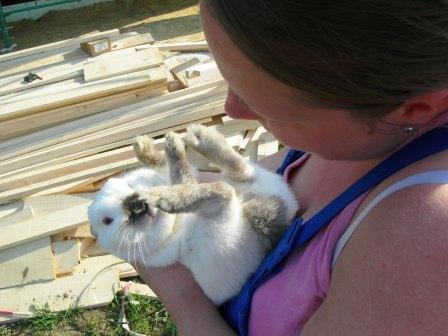 Plötzlich in der früh kommt einer unserer Mannen mit Findelzwergkaninchen Mömmelmann in der Hand rein mit der sachlichen Bemerkung "Mittagessen".