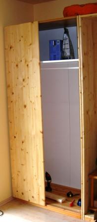 Als Alternative haben wir überlegt, beim Tischler unseres Vertrauens einen Kasten anfertigen zu lassen. Kostenpunkt: jenseits der 5000 Euro. Nachdem wir unter Zuhilfenahme von Riechsalz und Alkohol wieder zu uns gekommen sind, wieder ab zum schwedischen Wohnst-Du-schon-oder-schraubst-Du-noch - Möbelmarkt, um nach einem Schlafzimmerkasten in Nicht- Kiefer zu schauen. Das Ergebnis war ernüchternd. Mit den Abmessungen mit denen wir den Kasten gerne hätten, gibts kein Kastensystem oder Kasten generell. Das sollte ungefähr so ausschauen - siehe rechts.