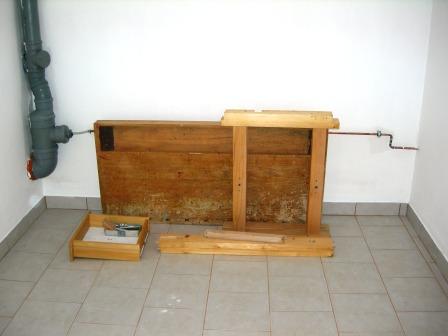 16.02.2008 Erstes Einrichtungsstück: Meine neue günstige Gebrauchthobelbank aus Salzburg. Jetzt muß sie nur noch zusammengeschnöselt werden.
