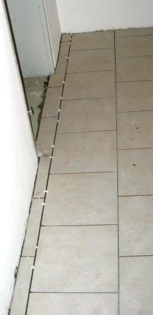 Um einen unschönen Fliesenübergang auf eine andere Fliesentype zu vermeiden, empfiehlt sichs, sich vorher Gedanken zu machen - oder die Tür mal probeweise einzuhängen - damits dann nicht so wie bei mir ausschaut...
