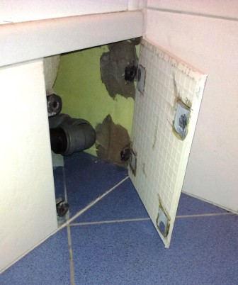 Wie haben uns zur Hausbau- zeiten entschlossen, den Revisionsschacht für Badewanne und Duschen nicht mit so einem hässlichen Silbertürl abzudecken, sondern ganz dezent und stylisch mit Magnethaltern an einer Fliese, die dann zusilikoniert wird. Genial geplant, hervorragend ausgeführt.